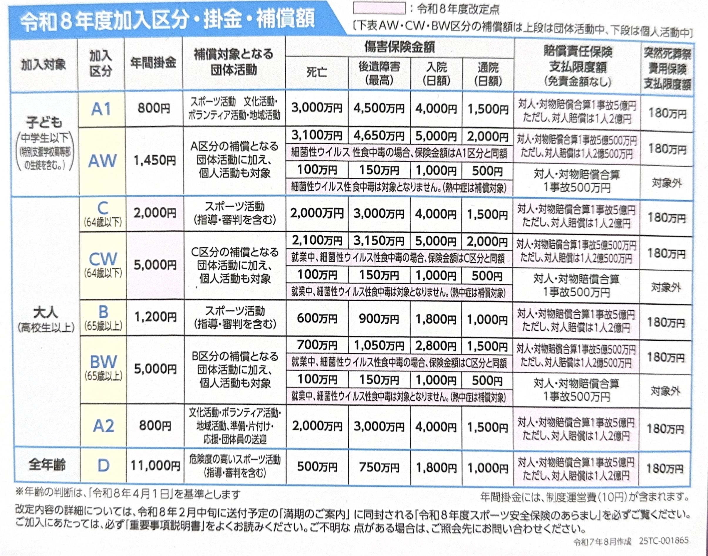 2026年度(令和8年度)より、スポーツ安全保険の内容および掛金が一部改定となります。