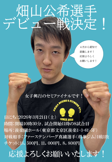 畑山公希選手デビュー戦決定!